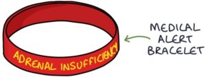 TOM TIP: If you see a patient in an OSCE exam who may have adrenal insufficiency, check for a medical alert bracelet worn to alert medical services that they are steroid-dependent if they become unconscious.